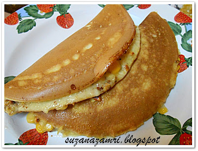 - Panaskan kuali leper.Lenser dengan sedikit minyak.Ambil sesenduk adunan dan ratakan di dalam kuali.